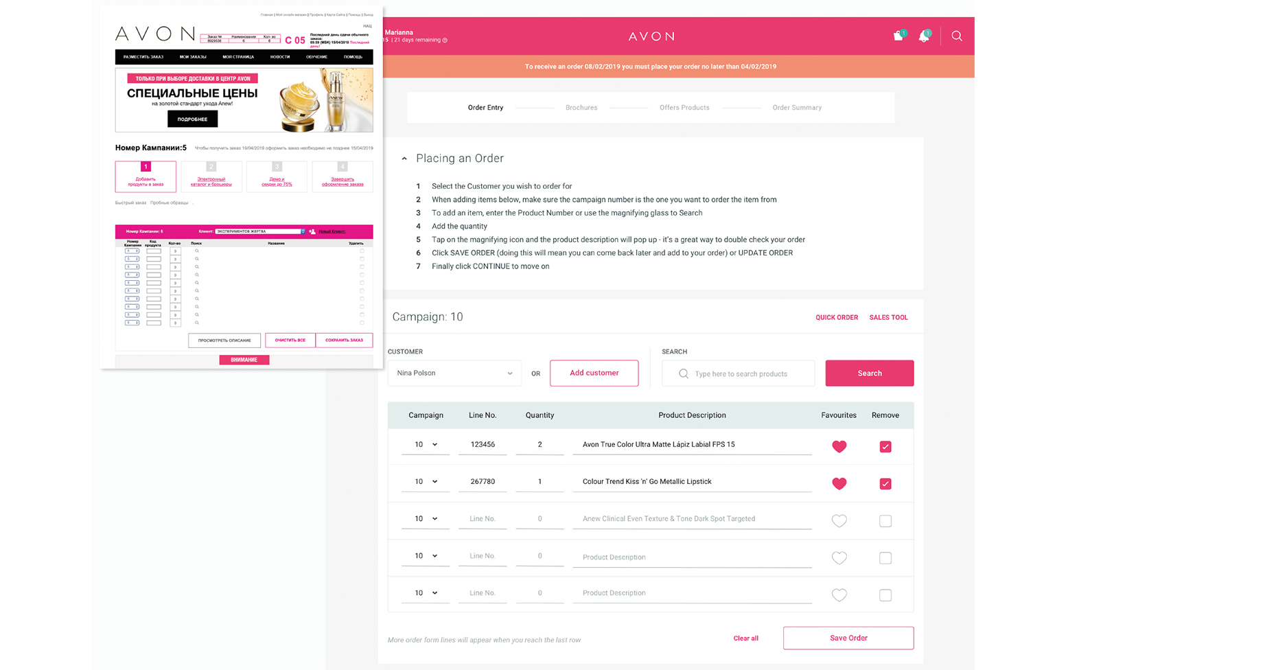 The GI3 platform is used daily by Avon Representatives in Russia to create their product orders.